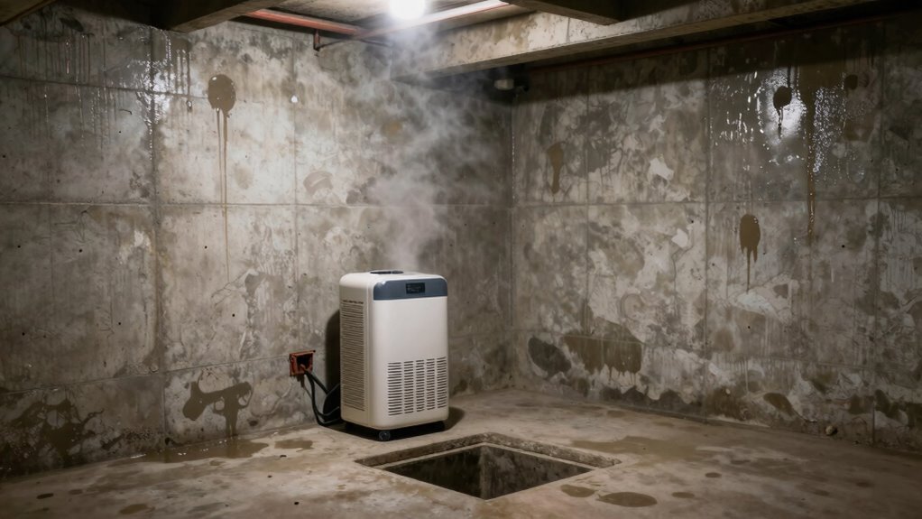 To dry out your damp finished basement, start by improving basement ventilation to increase air circulation. Place a dehumidifier in a central location, away from walls and furniture, to efficiently remove excess moisture. Run the dehumidifier continuously and keep windows open when possible. Regularly empty the water reservoir and monitor humidity levels with a hygrometer. These steps will help create a drier, healthier space.
