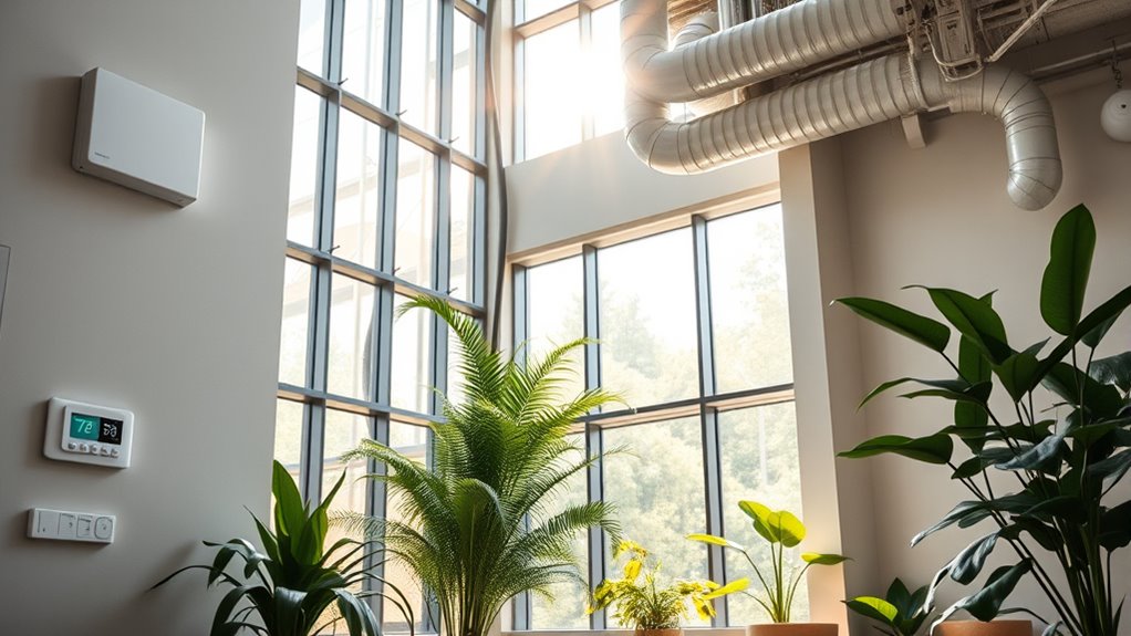 In different climate zones, you adapt your HVAC strategies to optimize efficiency. In cold regions, you focus on insulation, heat recovery, and zone-specific heating, while in hot zones, you prioritize cooling, ventilation, and shade. You consider climate adaptation by tailoring your approach to each environment. This zone-specific strategy guarantees energy savings, reduces emissions, and enhances comfort, helping you effectively lower your building’s carbon footprint regardless of where you are.