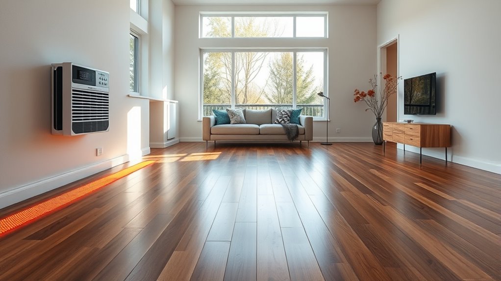 Finally, consider the installation process itself. Installing radiant floor heating can be more involved and may require access to your subfloor, which could mean some disruption. Combining this with a heat pump, especially if retrofitting an existing home, demands careful planning to avoid conflicts with existing systems or structural elements. By working with experienced installers, you can guarantee that both systems are integrated seamlessly, resulting in a reliable, energy-efficient heating solution that enhances your home’s comfort and sustainability.