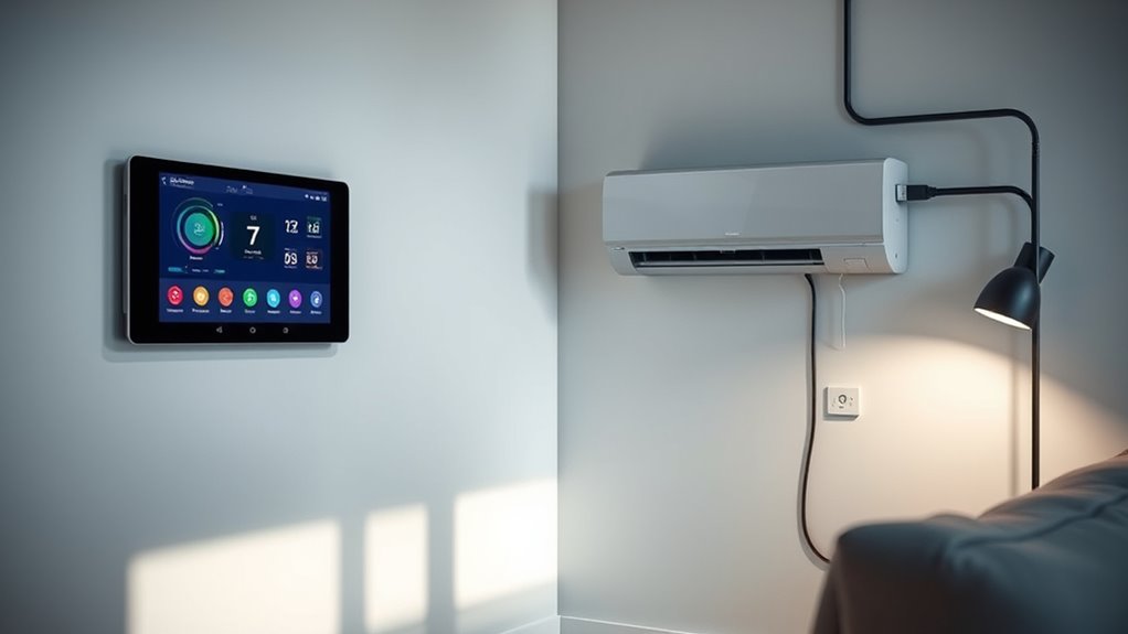 Smart home systems are transforming how we manage comfort and energy efficiency, especially when paired with heat pump heating. By integrating these systems, you gain more control over your home’s temperature while reducing energy consumption. This integration allows you to tailor your heating settings based on your lifestyle, schedule, and preferences, leading to smarter, more efficient use of energy. Instead of manually adjusting thermostats, you can set routines or let automation handle changes seamlessly. For example, your system can lower the temperature when you’re away or during nighttime, then ramp it up just before you wake up. This level of user automation guarantees you’re never wasting energy when you don’t need to, which helps cut costs and shrink your environmental footprint.