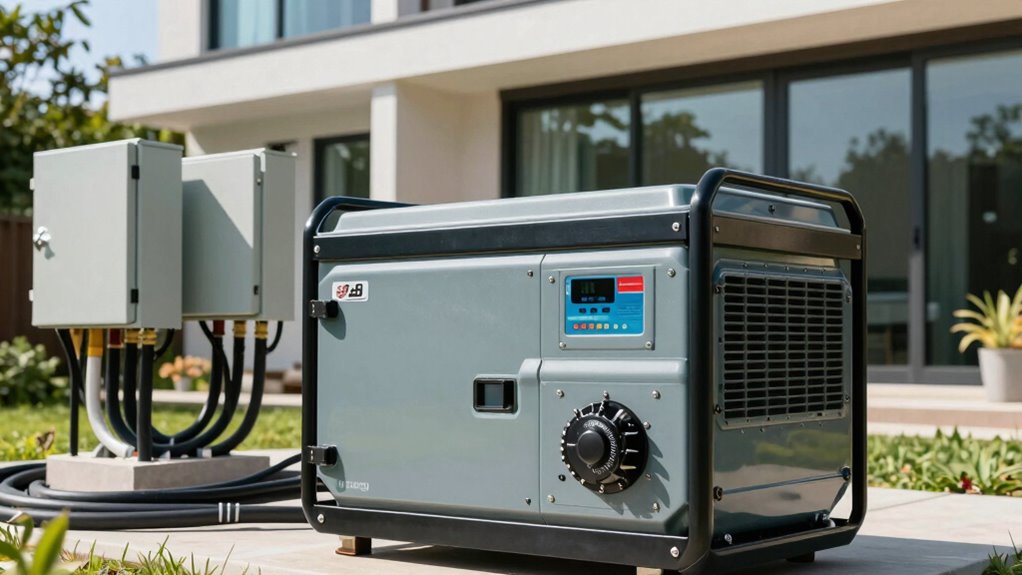 You don’t want to leave your generator installation to guesswork, so hiring a professional is essential. While it might seem tempting to DIY, a skilled assessment guarantees your system is correctly sized, preventing safety hazards or inefficiencies. Ignoring professional guidance risks overlooking safety precautions and could lead to costly mistakes. Trust an expert to evaluate your needs, confirming your all-electric home runs smoothly and safely without unnecessary surprises.