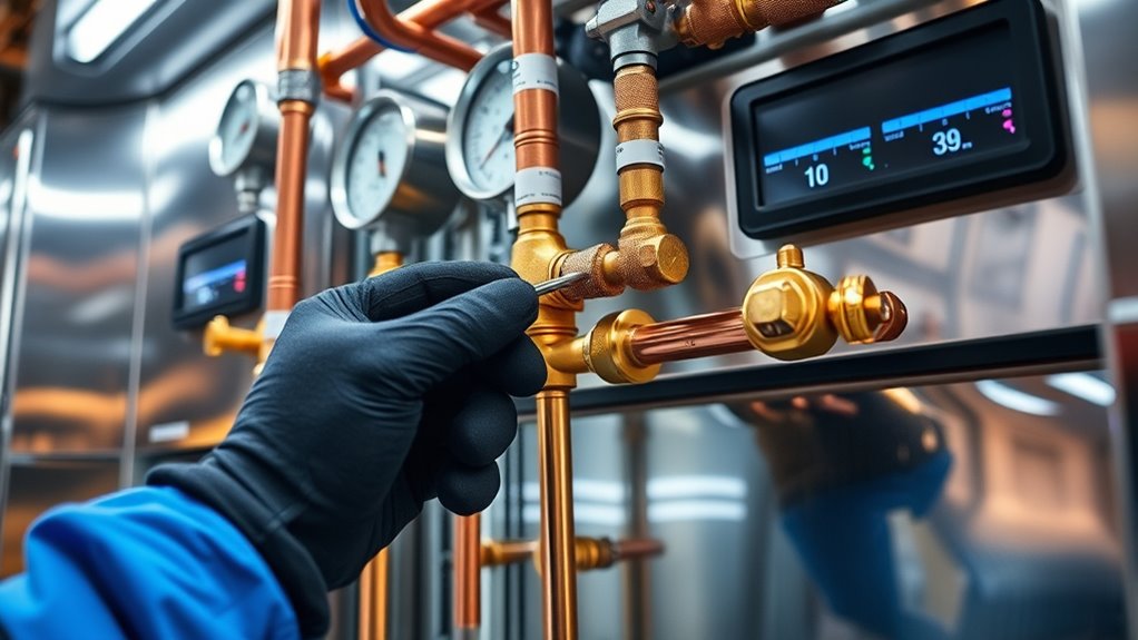 You should perform refrigerant system inspections at least once every year to guarantee optimal performance and safety. Regular inspection frequency aligns with your maintenance schedules, helping you catch leaks early and prevent environmental harm. If your system operates under heavy use or in harsh conditions, consider more frequent inspections. Staying consistent with these checks keeps your system efficient, reduces repair costs, and ensures compliance with regulations.