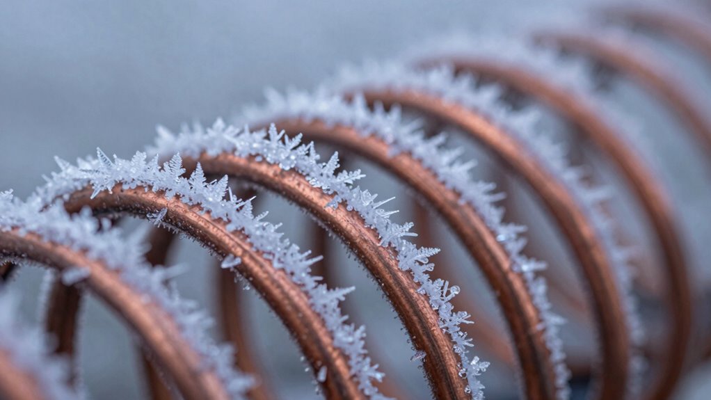 Frost forms on coils when moisture in the air condenses and freezes due to the cold temperatures created by the refrigerant during normal operation. This is often a sign your system is working as it should, especially in freezers and coolers. Small amounts of frost help the heat exchange process, but too much can cause issues. If you want to discover what causes excessive frost and how to prevent it, keep exploring the details below.