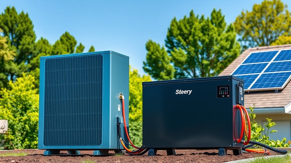 Renewable-powered heat pumps are transforming home heating by offering an eco-friendly alternative to traditional systems, but their efficiency can be notably enhanced when paired with battery storage. By integrating batteries, you can optimize energy use, reduce reliance on the grid, and make the most of renewable generation. This combination not only lowers your carbon footprint but also helps stabilize the grid during peak demand periods. When your heat pump operates during times of high renewable energy production, you’re supporting grid stability and easing the burden on utility providers.