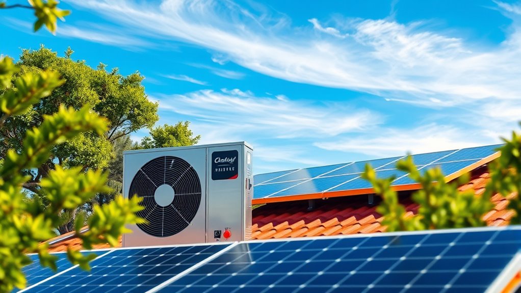 In essence, combining heat pumps with rooftop solar creates a synergy that maximizes energy efficiency and enhances grid integration. You gain independence from fluctuating energy prices, lower environmental impact, and a more resilient home. The investment pays off through lower bills, increased comfort, and contributing to a cleaner, smarter energy grid. As technology advances, these systems will become even more integrated, making it easier and more affordable for you to harness renewable energy and support a sustainable future.