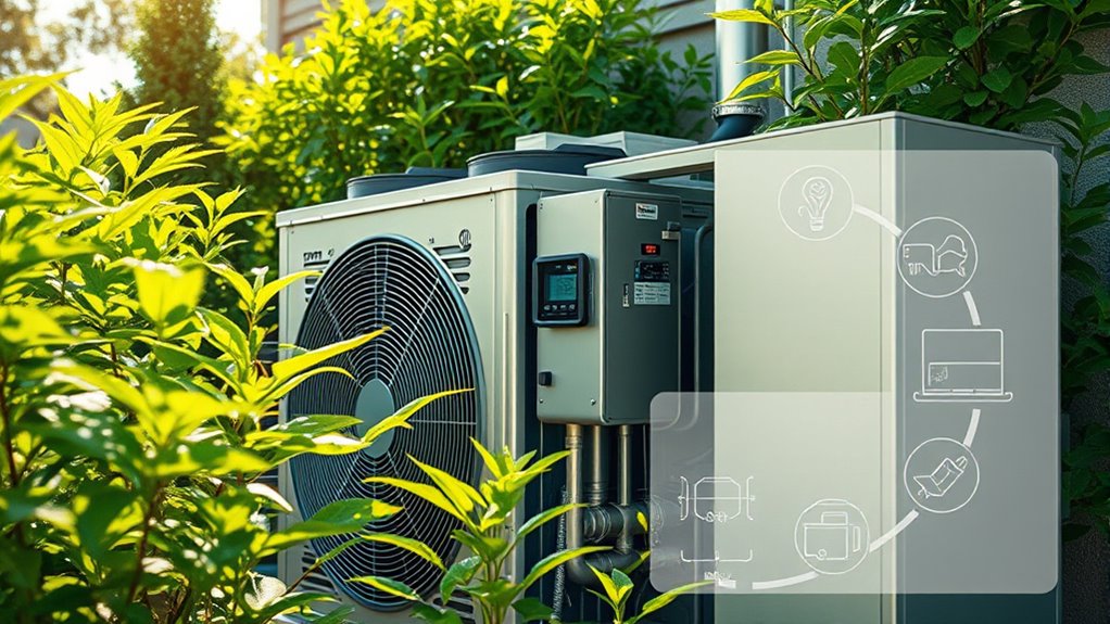 Have you ever wondered how renewable-powered heat pumps impact the environment over their entire lifespan? It’s a question worth exploring, especially as these systems become more common in efforts to reduce carbon emissions. From manufacturing to disposal, each stage influences the environment in different ways. During manufacturing impacts, the extraction of raw materials and production processes play a significant role. Producing the components, such as compressors, heat exchangers, and electronic controls, requires energy—often sourced from fossil fuels—contributing to greenhouse gas emissions. Additionally, manufacturing can generate waste and involve the use of hazardous substances, which, if not managed properly, may lead to soil and water contamination. The sourcing of rare metals and other materials needed for these systems can also put pressure on natural resources and ecosystems. As a result, the environmental footprint of manufacturing impacts is a critical consideration when evaluating the overall sustainability of renewable-powered heat pumps. Moreover, understanding the cultural significance of indigenous communities can be essential when developing sustainable practices that respect local traditions and land rights. Recycling challenges add another layer to the environmental impact. At the end of a heat pump’s life, recycling the device becomes essential to minimize waste and recover valuable materials. However, the complexity of modern heat pump systems can make recycling difficult. Disassembling units requires specialized processes to safely extract refrigerants, electronic components, and metals, which often contain hazardous substances. If not properly recycled, these materials can leach into the environment, causing pollution and health risks. Furthermore, the lack of standardized recycling infrastructure in some regions hampers efforts to reclaim materials efficiently. This means that, despite being powered by renewable energy during operation, the disposal phase still poses environmental challenges. Improving recycling technologies and establishing clear protocols are crucial steps to mitigate these issues, ensuring that the full lifecycle of heat pumps aligns with sustainability goals.