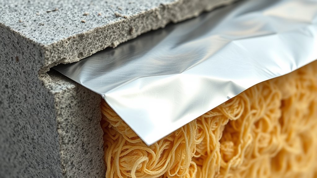 Aging impacts the thermal properties of insulation materials through material degradation, which can reduce their effectiveness. Over time, exposure to moisture, UV rays, and temperature fluctuations causes aging effects like cracks, settling, or loss of insulating gases. These changes increase thermal conductivity, meaning your insulation becomes less effective at preventing heat transfer. Regular inspections and maintenance help mitigate aging effects, ensuring your insulation maintains best thermal performance over its lifespan.