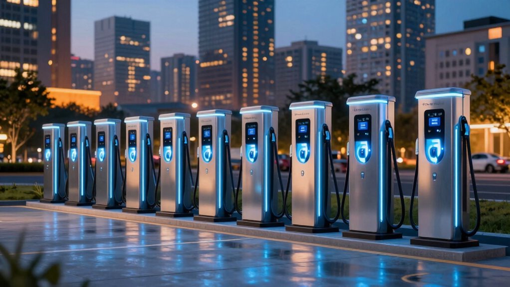 Smart connectivity features are essential for modern 48 Amp Level 2 EV chargers, as they give users convenient control and real-time insights into their charging sessions. With these features, I can monitor and manage my charger remotely through mobile apps or web interfaces, making adjustments on the go. Scheduling charging during off-peak hours helps me save on electricity costs and optimize energy use. I also appreciate access to real-time data like charging status, energy consumption, and charging speed, which keeps me informed. Firmware updates delivered over Wi-Fi ensure my charger stays compatible with new EV models and standards. Secure connection protocols, such as Wi-Fi and Bluetooth, safeguard me from unauthorized access, providing peace of mind during remote operation.