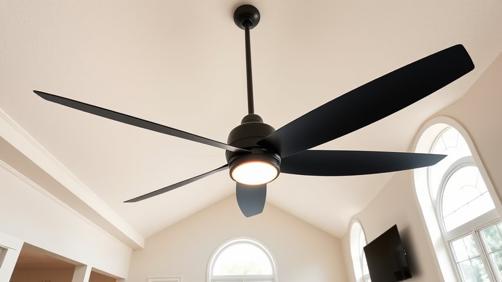When choosing the perfect ceiling fan for high ceilings, remember that style and efficiency are your best allies. Like a trusted compass guiding you through options, these fans blend design with function, turning a simple ceiling into a statement piece. So, don’t just settle—select one that elevates your space and keeps the air flowing smoothly. After all, a great fan isn’t just a feature; it’s the heartbeat of your room’s comfort.