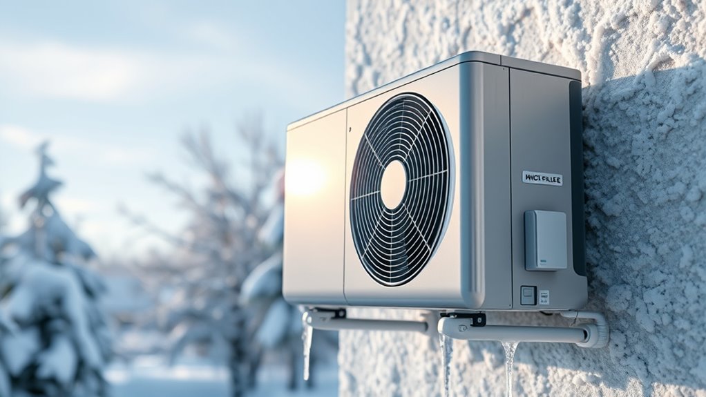 Choosing a cold climate mini split heat pump requires careful attention to its ability to perform reliably in freezing temperatures. I look for units rated to operate effectively at -20°F or lower, ensuring consistent warmth during the coldest days. Advanced defrost technology is essential, as it prevents ice buildup and keeps efficiency high in freezing conditions. I also verify that the heating capacity remains robust at low ambient temperatures, often indicated by HSPF ratings and certifications specific to cold climates. Additionally, I consider models with corrosion-resistant features like gold-plated FIN technology, which withstand harsh winter elements. Ultimately, I prefer systems with a proven track record or certifications for cold climate operation, giving me confidence they’ll perform reliably throughout winter.