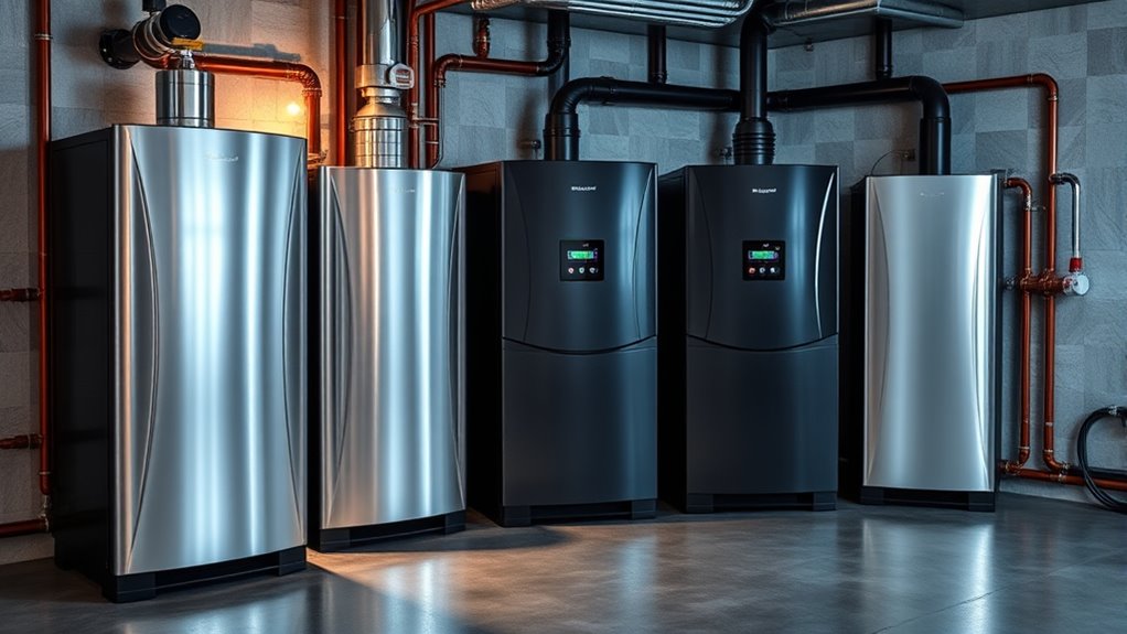 When choosing an electric boiler, I look for safety features like an automatic shut-off to prevent overheating, a pressure relief valve to avoid pressure buildup, and secure electrical connections to prevent short circuits. I also prioritize models with corrosion-resistant components and clear, easy-to-understand safety instructions. These features give me peace of mind, knowing my system is safer and reliable, especially during extended use or emergencies.