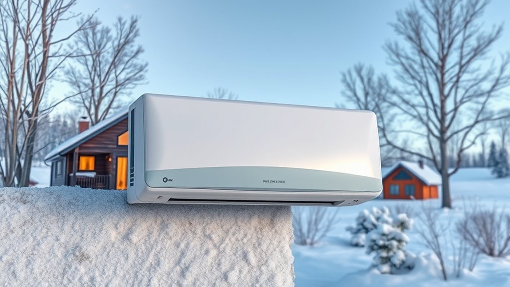 Choosing a mini-split heat pump for cold weather means paying close attention to its ability to perform reliably at low outdoor temperatures. Modern units designed for cold climates can operate efficiently down to -13℉/-25℃, ensuring consistent warmth during winter. Advanced defrosting technology is essential to prevent ice buildup, maintaining ideal performance. Systems with enhanced heat exchanger designs and gold-plated FIN technology improve heat transfer at low temperatures, boosting efficiency. Additionally, a high HSPF rating and capacity retention at cold temperatures indicate better cold-weather performance. Proper insulation and careful installation of the line set are also critical—they prevent heat loss and help the system operate efficiently. Overall, these features are indispensable for reliable, energy-efficient heating in harsh winter conditions.