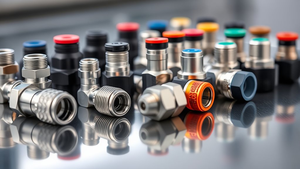 Selecting quick connect refrigerant fittings involves considering not just their compatibility but also the materials they’re made from. High-quality fittings are usually crafted from durable materials like brass or aluminum, which can withstand high pressures and resist corrosion over time. The material’s resistance to wear and chemical exposure ensures the fittings remain reliable through repeated connect and disconnect cycles. Properly manufactured fittings also feature precision threading and tight seals, preventing leaks and maintaining system efficiency. Material choice impacts temperature tolerance, with premium metals handling thermal stresses common in HVAC and automotive work. Additionally, certifications such as SAE or ASME indicate the fittings meet safety and quality standards, confirming their suitability for demanding refrigerant applications. Prioritizing material durability guarantees long-term performance and system integrity.