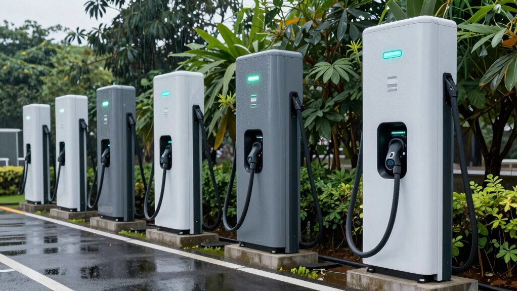 Outdoor chargers prevent corrosion through several effective methods. I’ve seen them use high-quality, rust-resistant materials like stainless steel or coated metals that resist moisture. They also incorporate sealed enclosures with gaskets and waterproof seals to keep water and dirt out. Regular maintenance helps, but these protective designs are essential for long-term durability, ensuring the chargers stay functional despite exposure to rain, snow, and humidity over time.